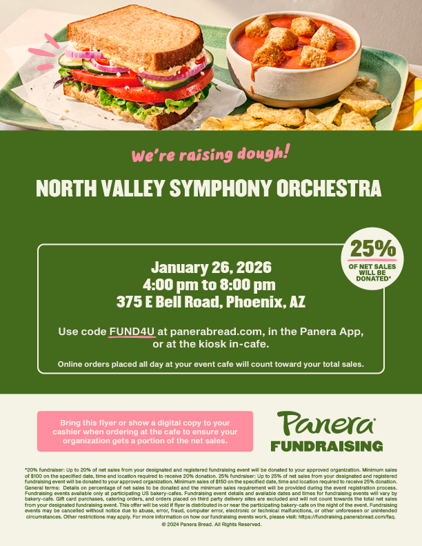 Use your Fry's Rewards Card to benefit your North Valley Symphony Orchestra. Simply go online to frysfood.com and designate North Valley Symphony Orchestra as your favorite non-profit. Every time you shop at Fry's, Fry's will automatically offer a rebate to NVSO with no extra cost to you.